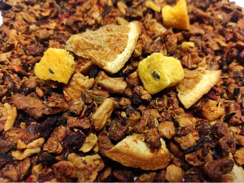 Aromatisierter Früchtetee mit Blutorange-Maracujas-Geschmack
